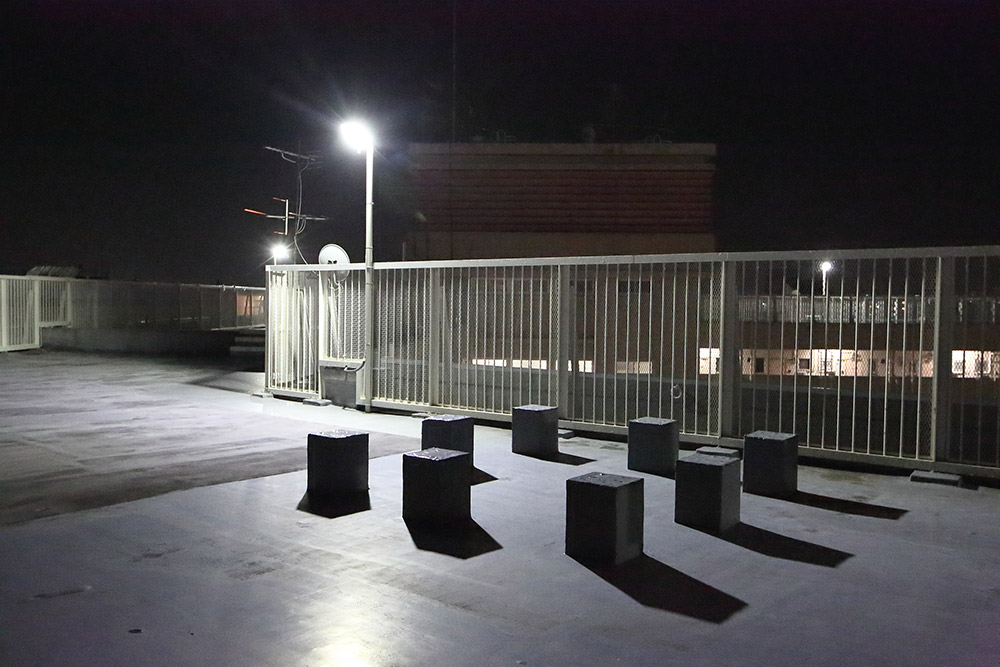 屋上には遊具の跡がいまも残る。