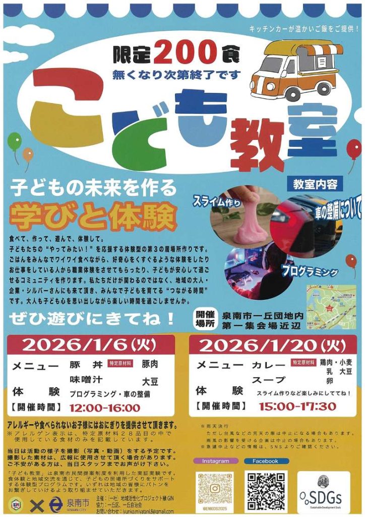 泉南市民間提案制度(実証実験型)採択事業の「こども教室」を開催します(泉南市)